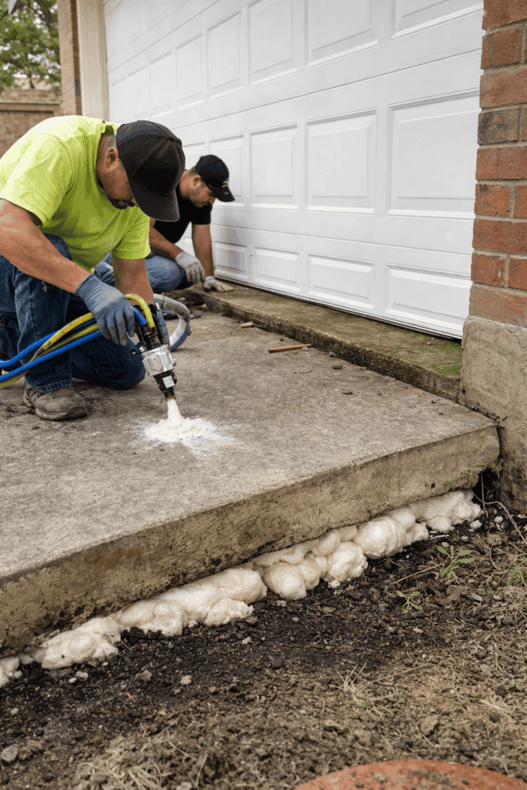 Our team carefully injects specialized material under the sunken slab to fill empty spaces and support the concrete. The pressure gently raises the slab back into its proper position.